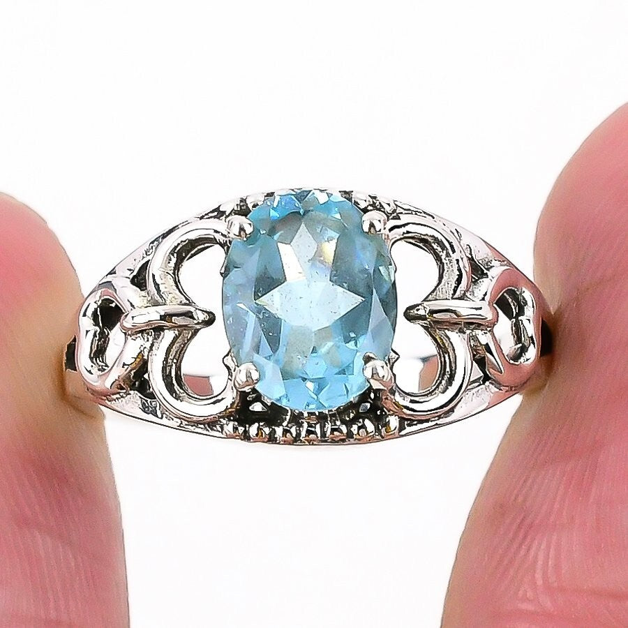 Aquamarine Gemstone Solid Silver Wife Statement Artisan Handmade March Ring US 8