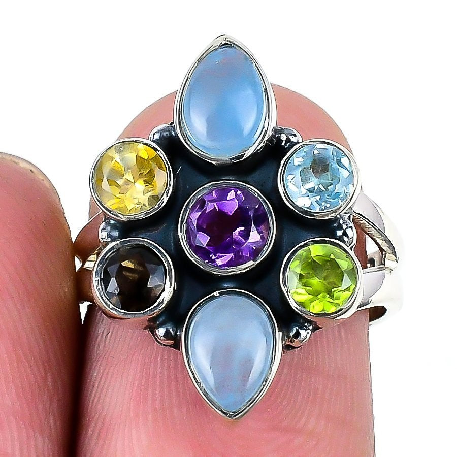 Aquamarine Gemstone Solid Sterling Silver Elegant Mother March Statement Ring