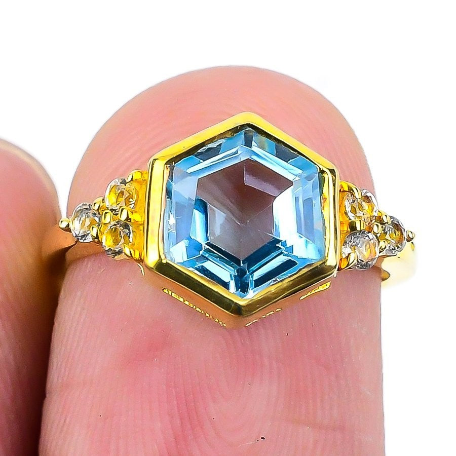 Aquamarine Gemstone Statement March Daughter Gift Ring 925 Sterling Silver US 6