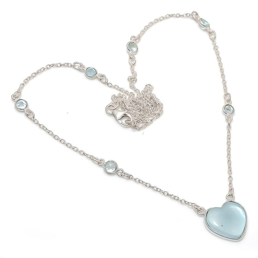 Aquamarine Gemstone Sterling Silver Art Deco Ethnic Chain Anniversary Necklace