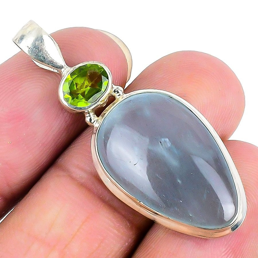 Aquamarine Stone 925 Solid Silver Bezel Handmade Engagement Wife Pendant Jewelry