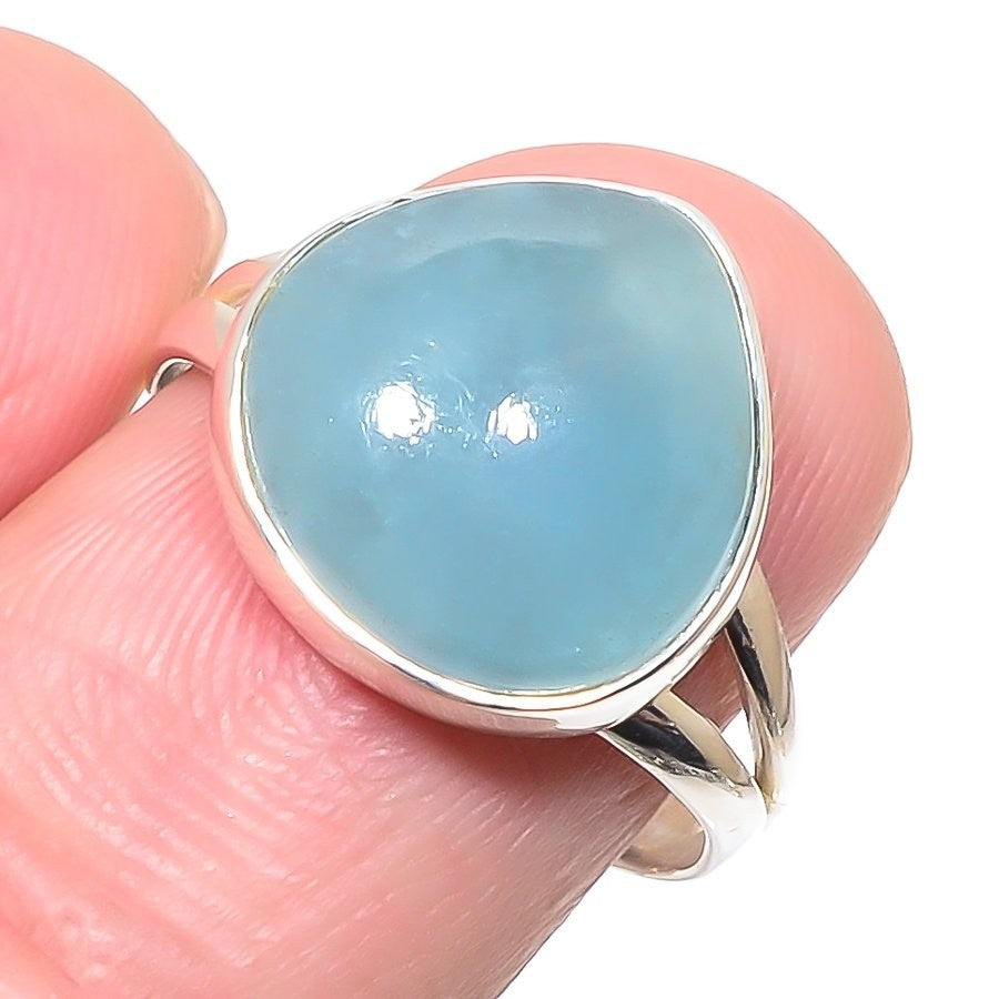 Aquamarine Stone 925 Solid Silver Birthday Cluster Throat Chakra Ring Jewelry