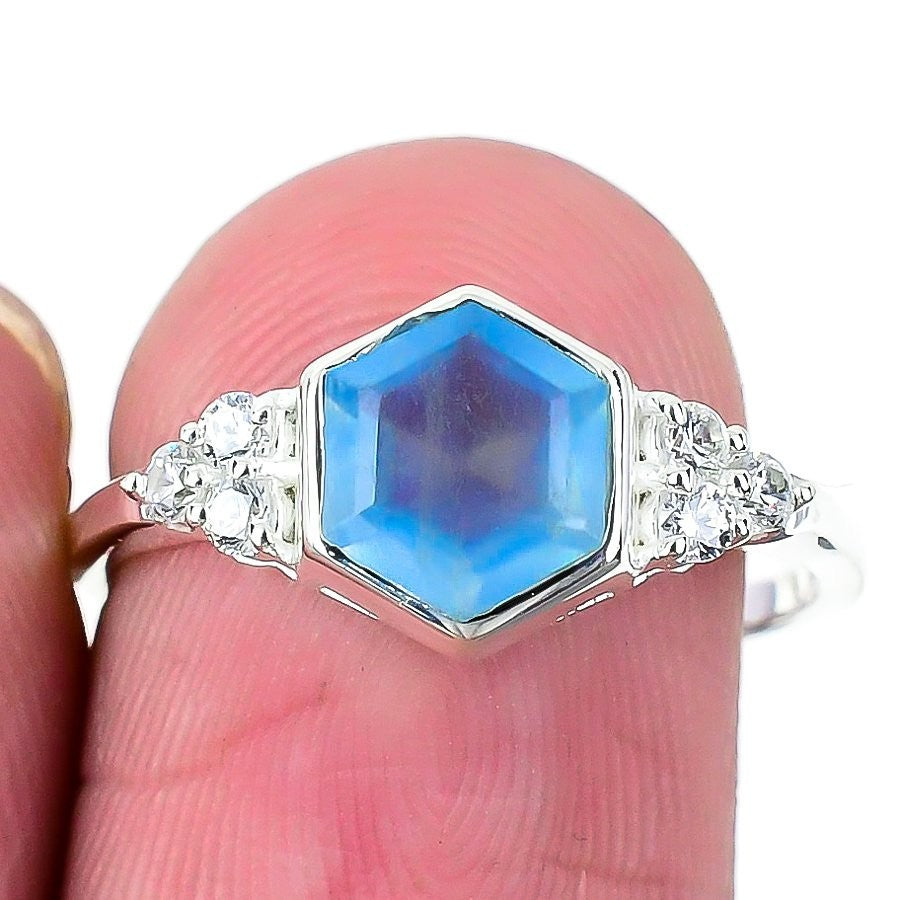 Aquamarine Stone 925�Solid�Silver Friendship Day Cluster New Ring Jewelry Size 8