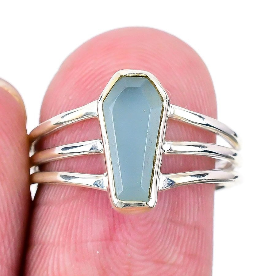 Aquamarine Stone Cluster Throat Chakra Daughter Ring Size 7.5 925�Solid�Silver