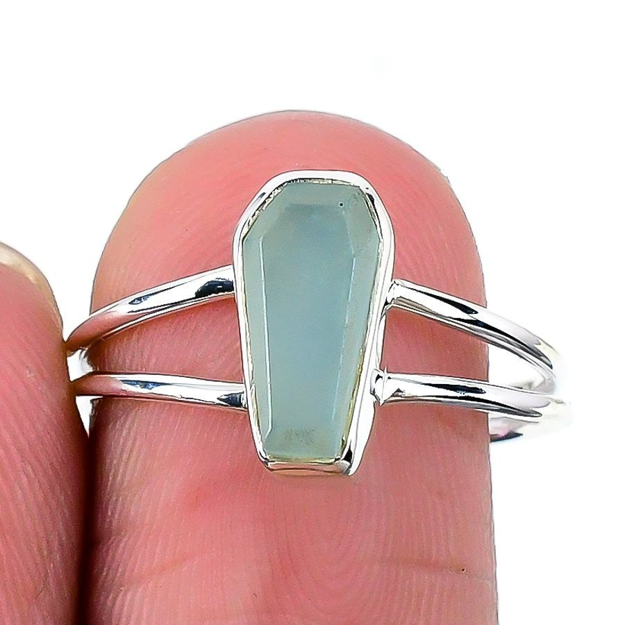 Aquamarine Stone Elegant Engagement Statement Ring Jewelry Size 8 Solid Silver