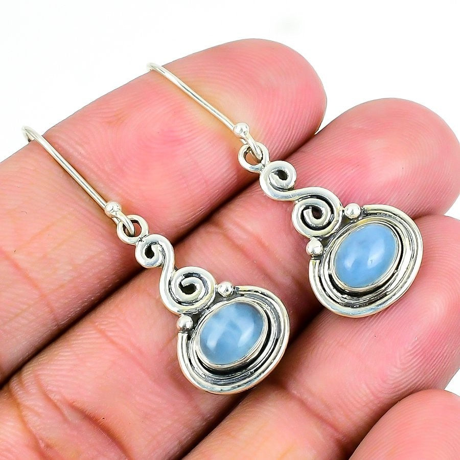 Aquamarine Stone Engagement Hook Dangling Daughter Earrings Jewelry Solid Silver
