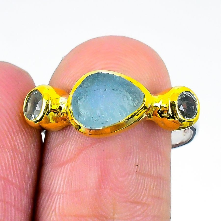 Elegant Aquamarine Stone Solid Silver Trendy Promise Stateme