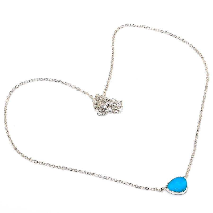 Arizona Turquoise Gemstone Handcrafted Chain Boho Necklace 925 Sterling Silver