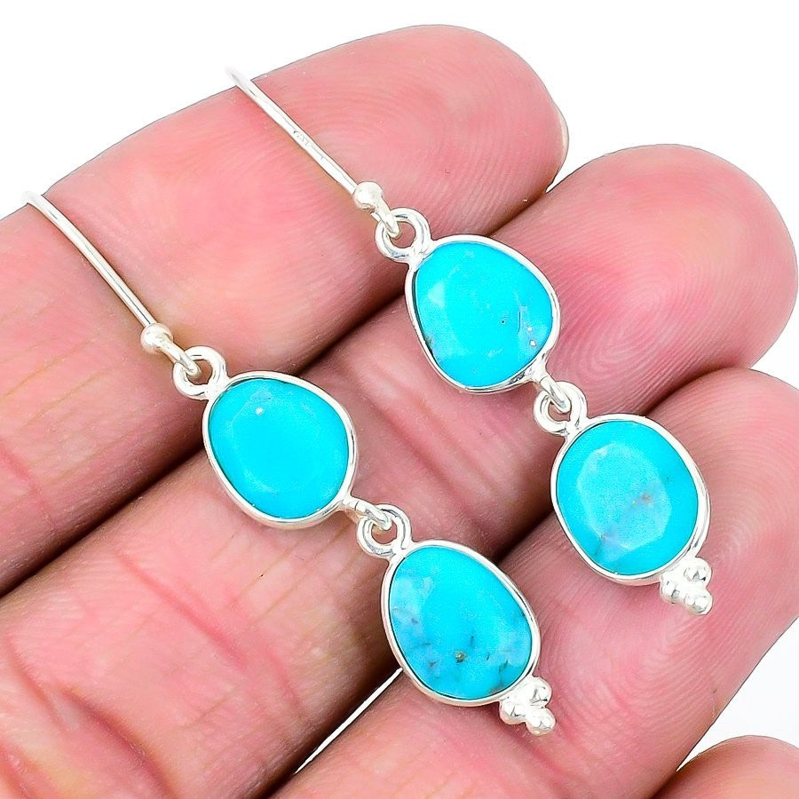 Arizona Turquoise Gemstone Solid Silver Hook Drop Wedding Engagement Earrings