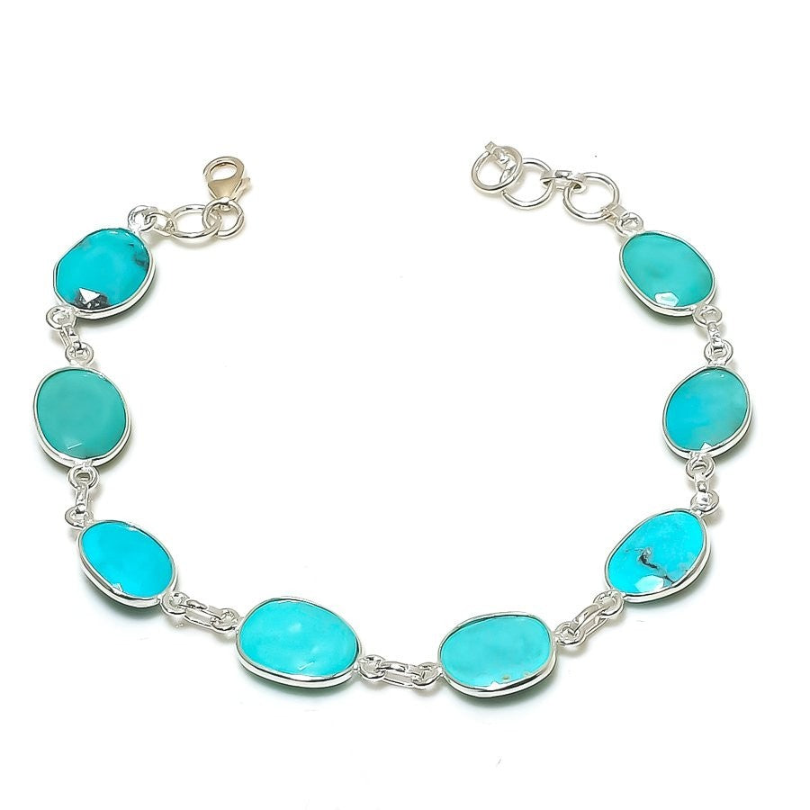 Arizona Turquoise Gemstone Solid Sterling Silver Chain Daughter Gift Bracelet