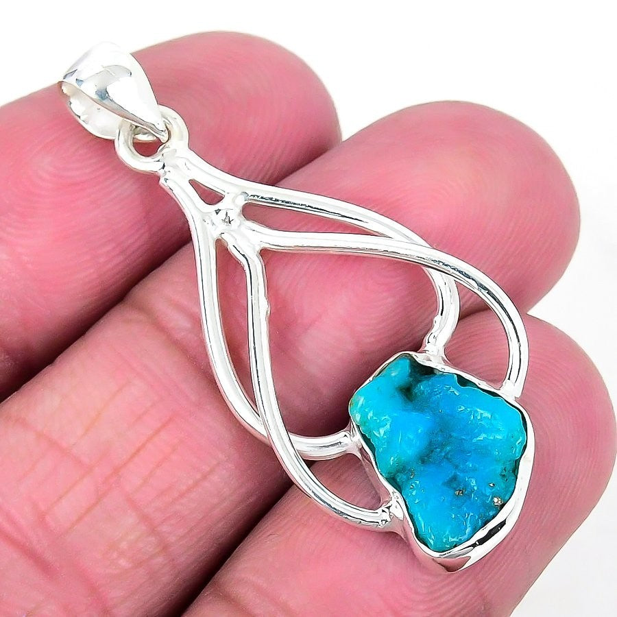 Arizona Turquoise Gemstone Sterling Silver Daughter Channel Set Pendant Jewelry