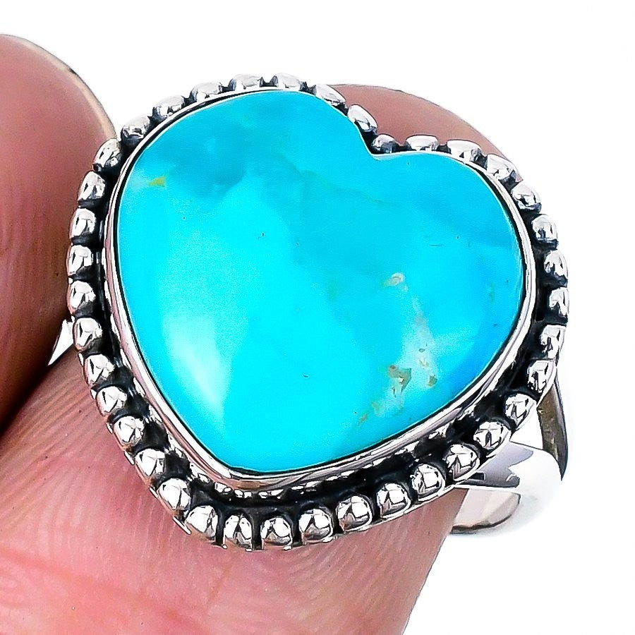 Arizona Turquoise Heart Stone Solid Silver Statement Boho Ring Jewelry Size 8