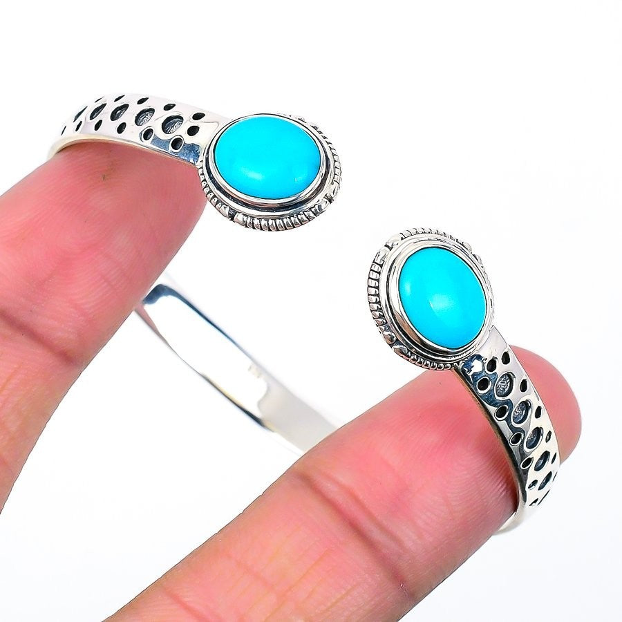 Arizona Turquoise Stone 925 Sterling Silver Elegant Engagement Wife Cuff Jewelry