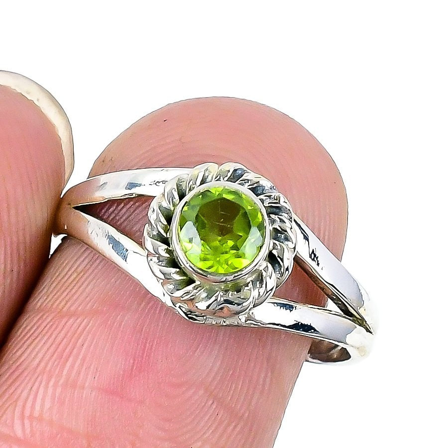August Birth Peridot Faceted Gemstone 925 Solid Silver Statement Ring Jewelry