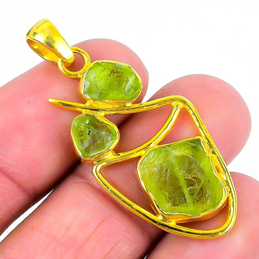 August Natural Peridot Rough 925 Solid Silver Gold Vermeil Handmade Boho Pendant