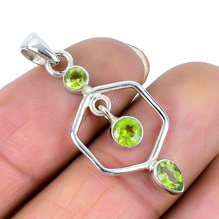August Peridot Faceted Gemstone Solid Sterling Silver Engagement Pendant Jewelry