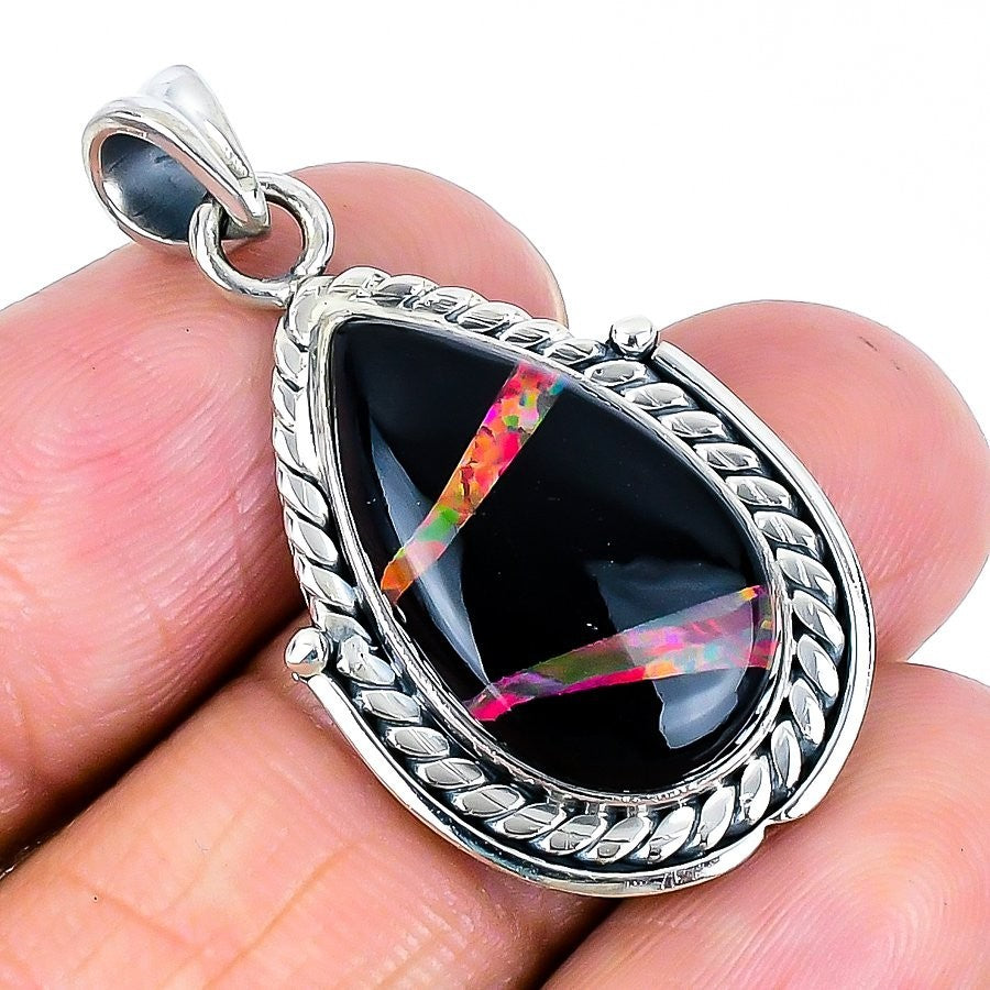 Aura Opal Composite Gemstone 925 Solid Silver Art Deco Birthday Pendant Jewelry