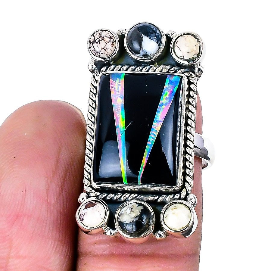 Aura Opal Composite Gemstone Handmade Statement Ring Jewelry Size 7 Solid Silver