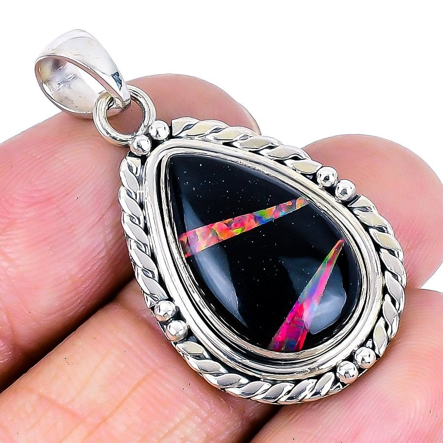 Aura Opal Composite Stone 925 Sterling Silver Daughter Gift Wife Pendant Jewelry
