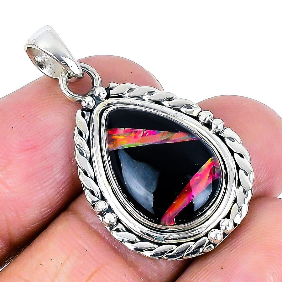 Aura Opal Composite Stone 925 Sterling Silver Unique Daughter Gift Wife Pendant