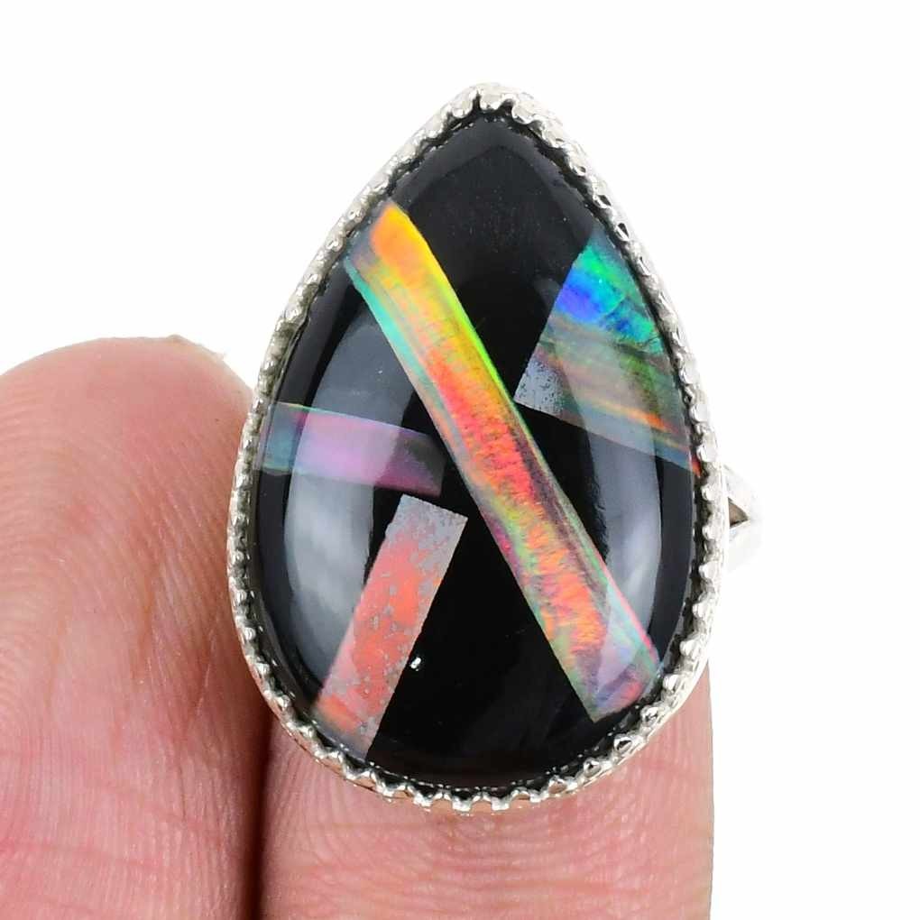 Aura Opal Gemstone Solid Sterling Silver Wedding Birthday Cluster Ring Size 6.5