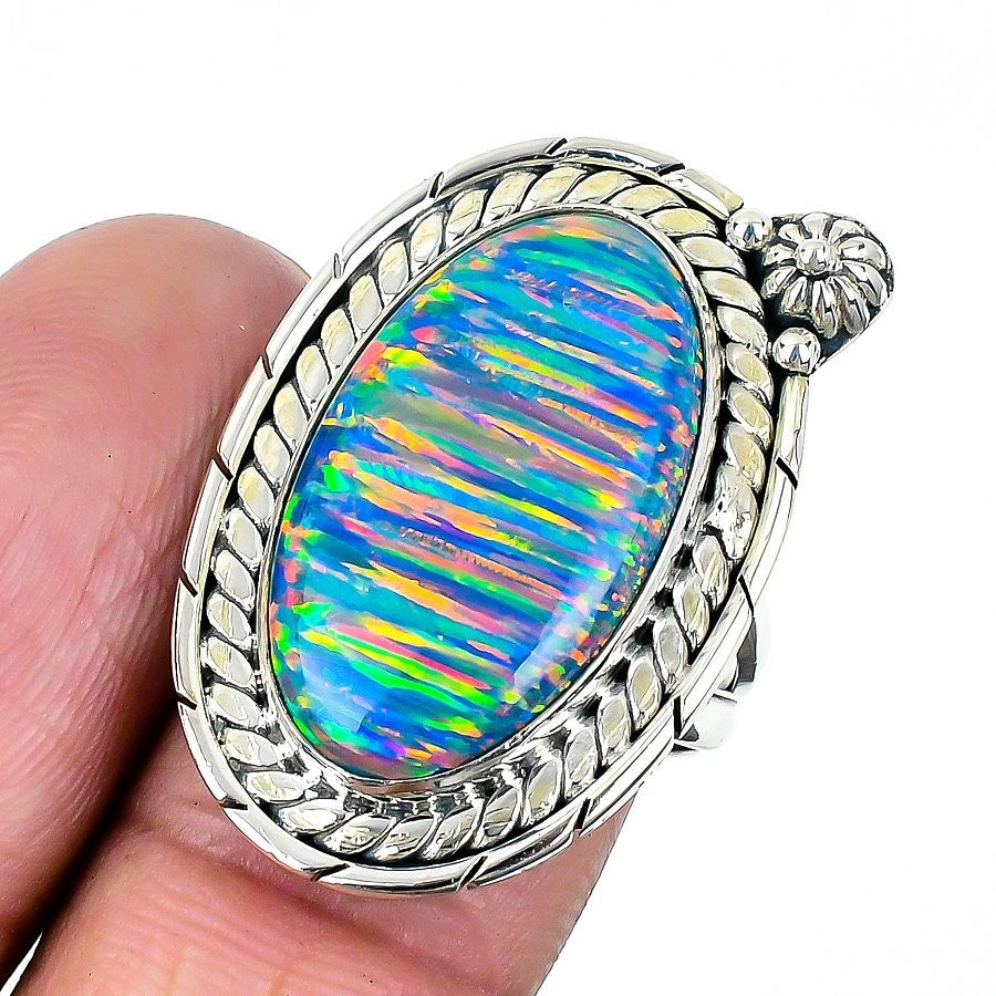 Aurora opal Gemstone Solid Silver Boho Statement Anniversary Ring Jewelry US 8