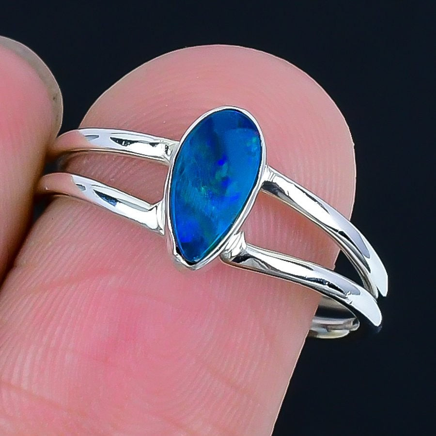 Australian Opal Gemstone Solid Silver Cluster Artisan Wife Ring Jewelry Size 8.5