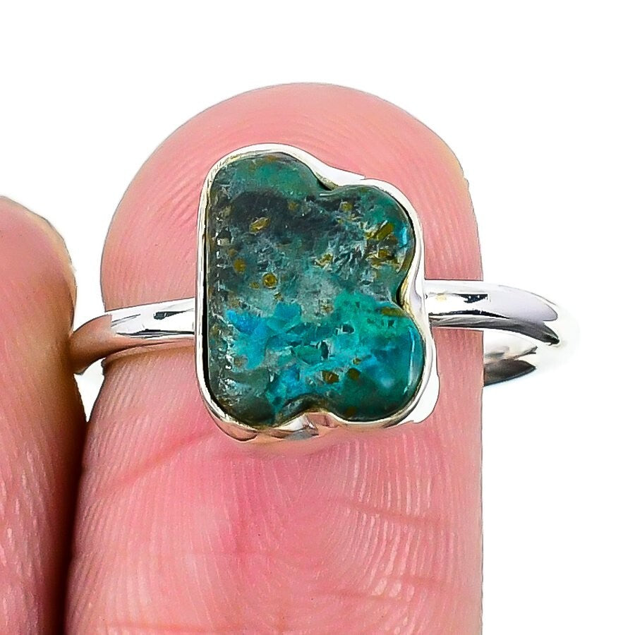 Azurite Gemstone Wife Birthday Wedding Cluster Ring Size 7.5 925 Solid Silver