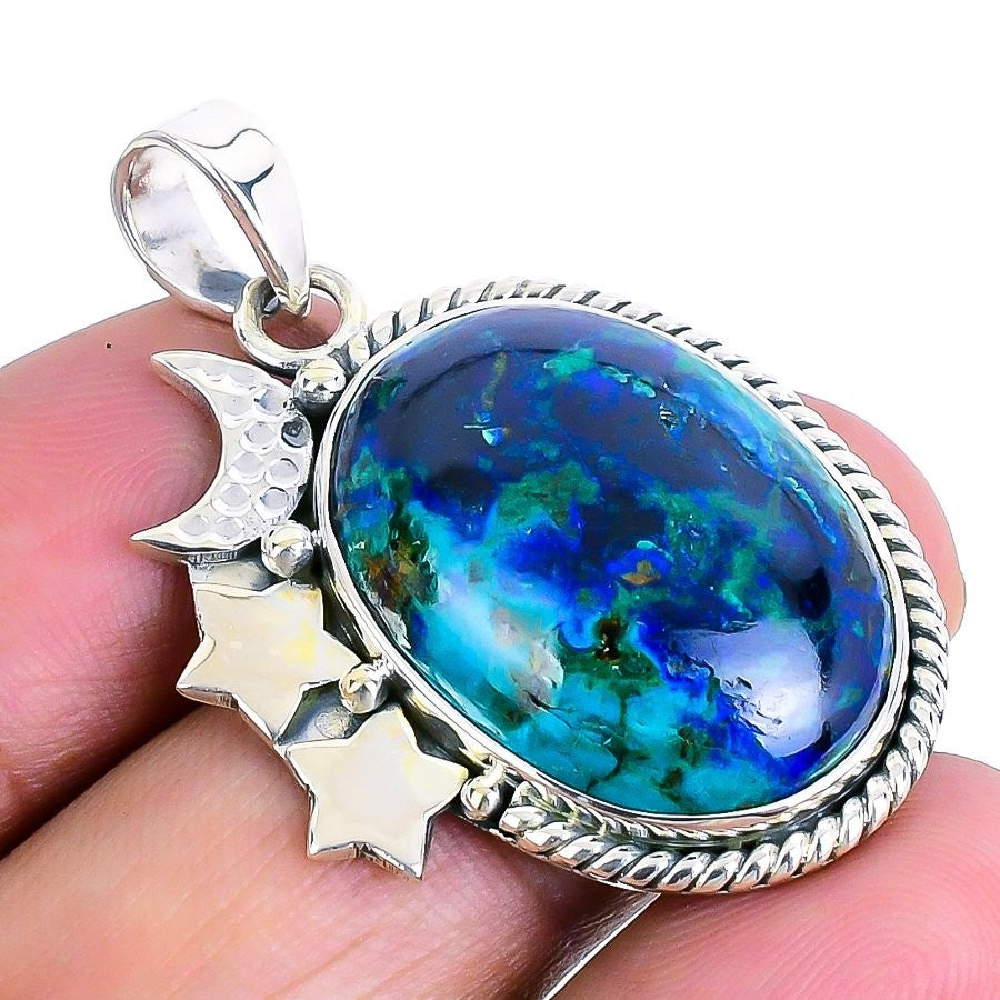 Azurite Malachite Gemstone 925 Sterling Silver Boho Mother New Pendant Jewelry