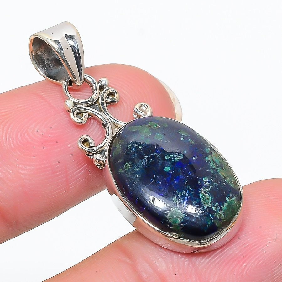 Elegant Azurite Malachite Gemstone Solid Sterling Silver Dau