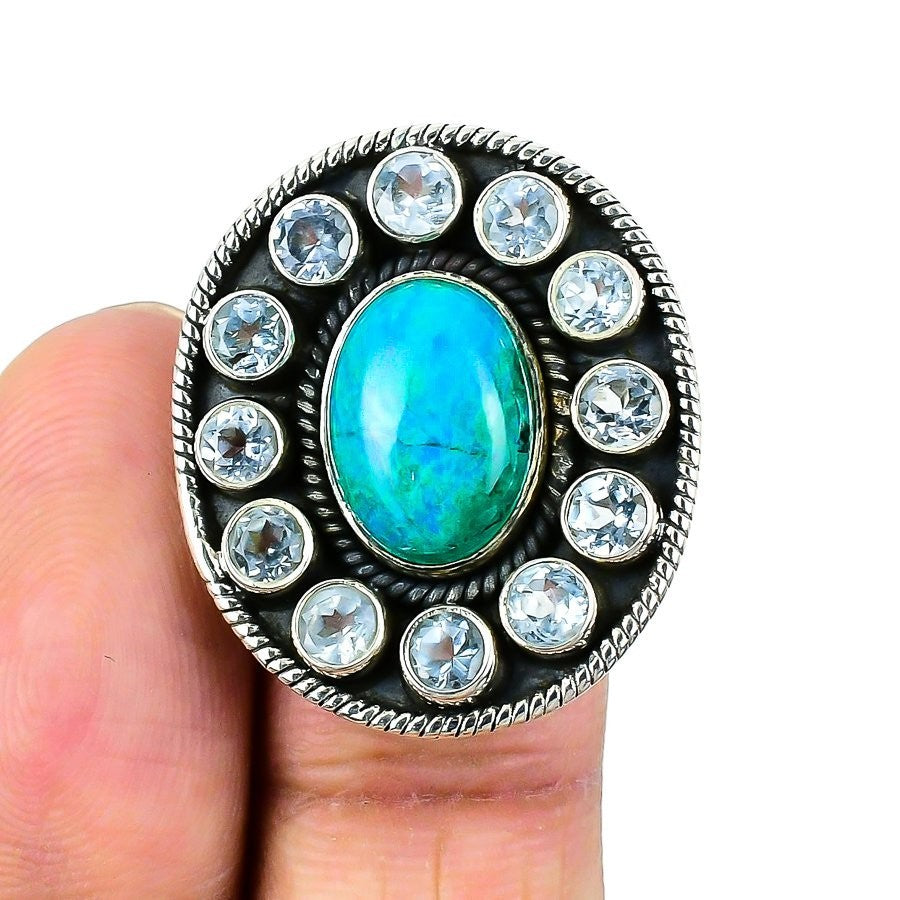 Azurite Stone Sterling Silver Elegant Statement Friend Gift Ring Jewelry Size 8