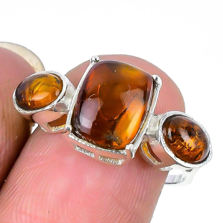 Baltic Amber Gemstone 925 Sterling Silver Boho Statement Sister Ethnic Ring US 8