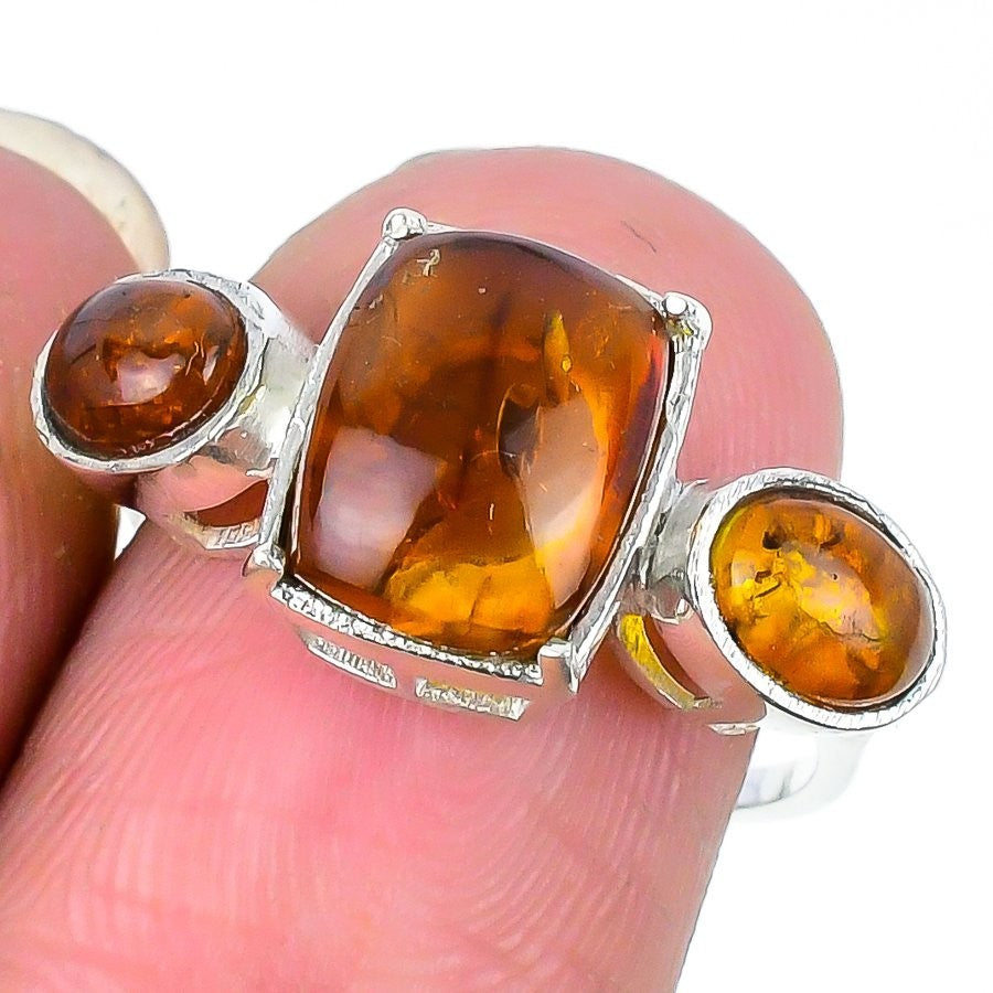 Baltic Amber Stone 925 Solid Silver Handmade Boho Statement Wedding Ring Size 8