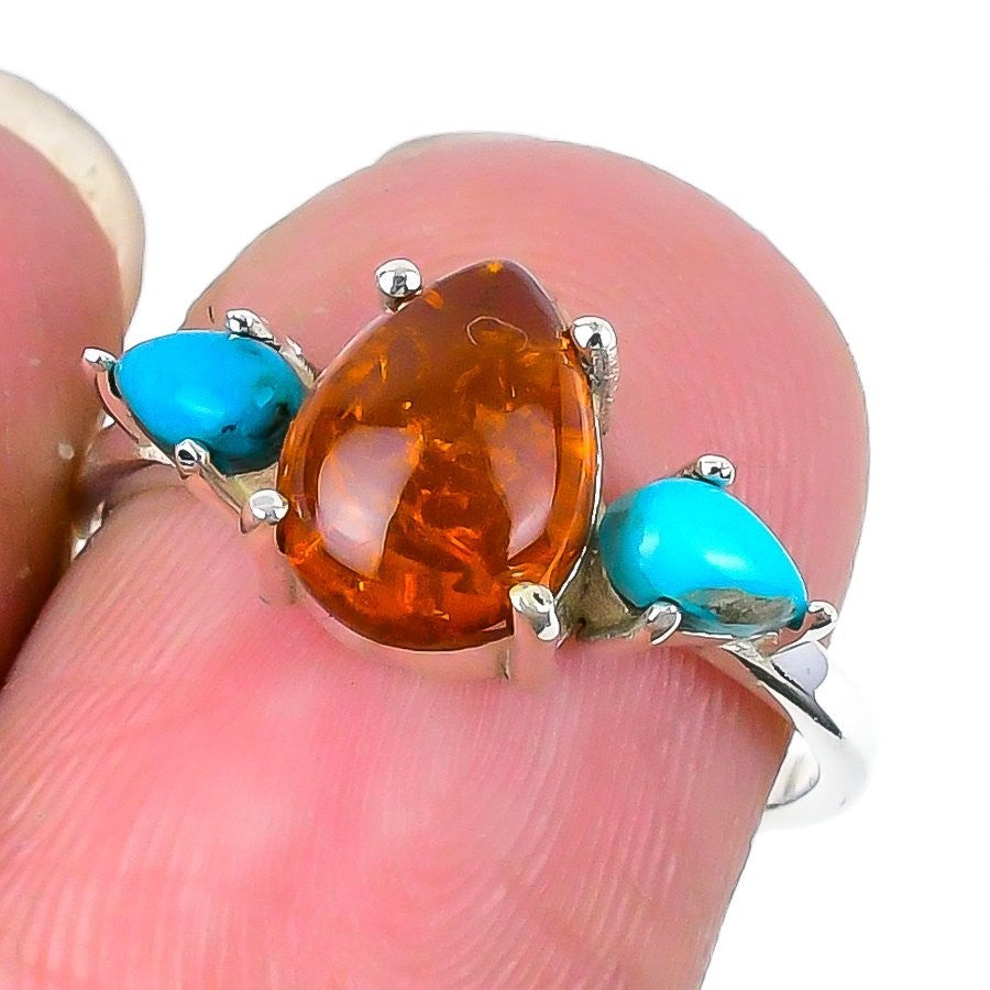 Baltic Amber Stone Solid Silver Wife Statement Sacral Chakra Ring Jewelry US 7