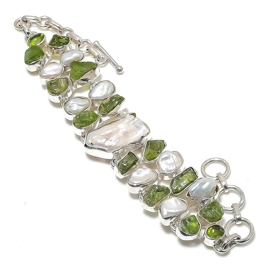 Biwa Pearl Stone Boho Chain Handmade Art Deco Bracelet Jewelry 925 Solid Silver