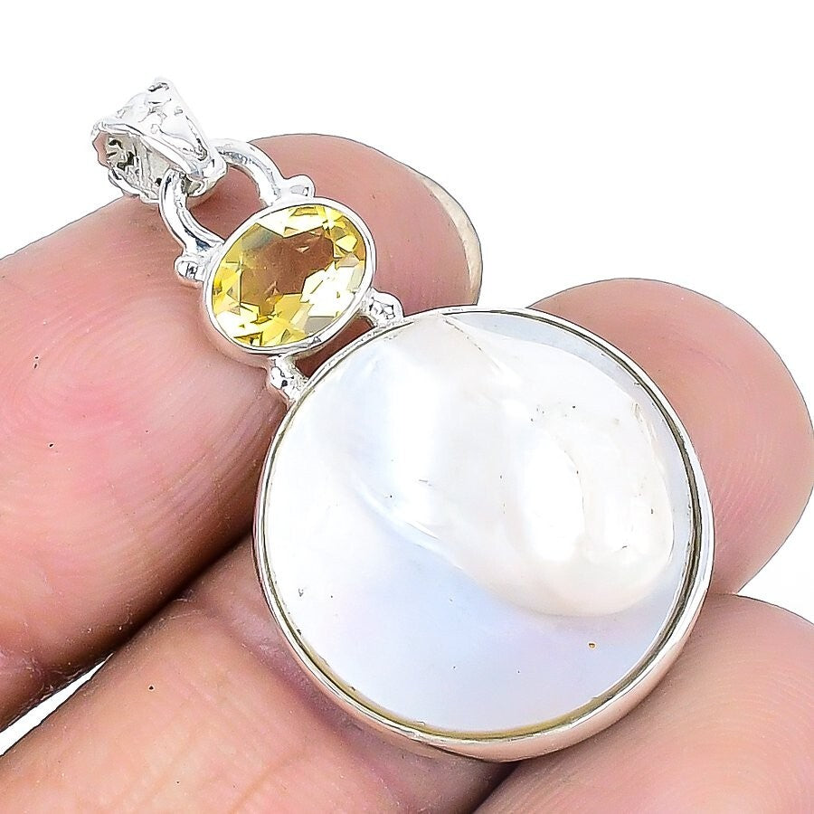 Biwa Pearl Stone Sterling Silver Sister Engagement Birthday Elegant Boho Pendant