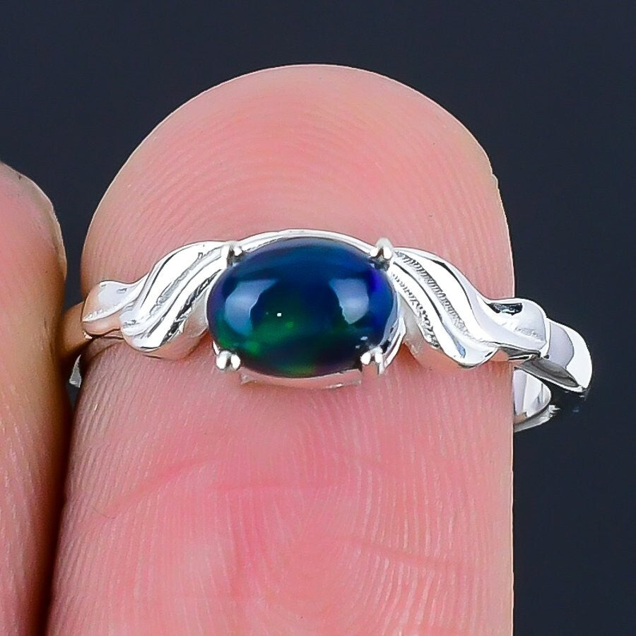 black Ethiopian Opal Gemstone Cluster October Ring Size 7 925 Sterling Silver