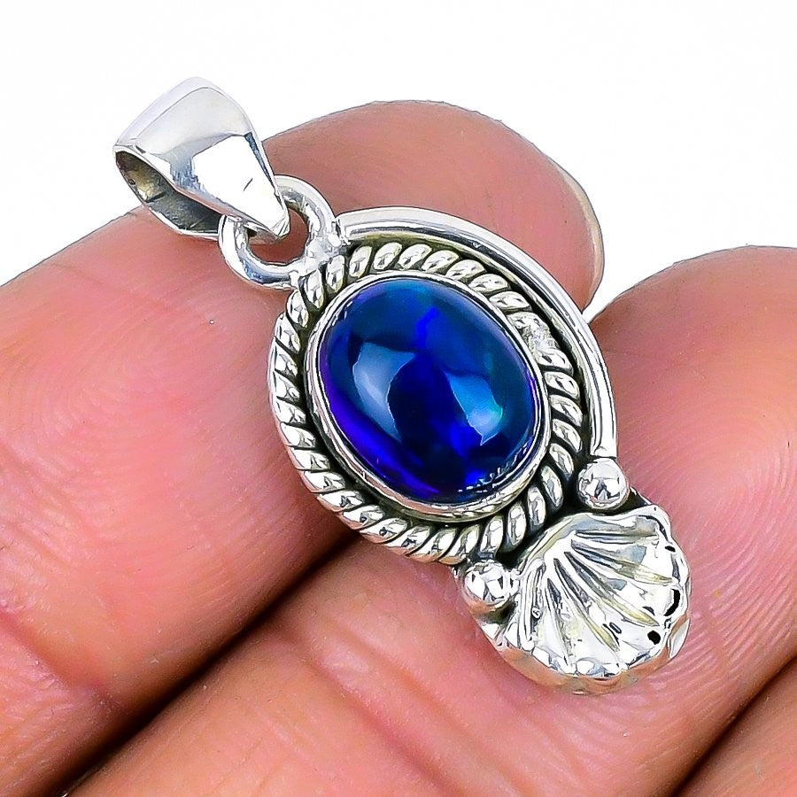 Black Ethiopian Opal Gemstone Solid Silver Daughters Day Wedding Pendant Jewelry