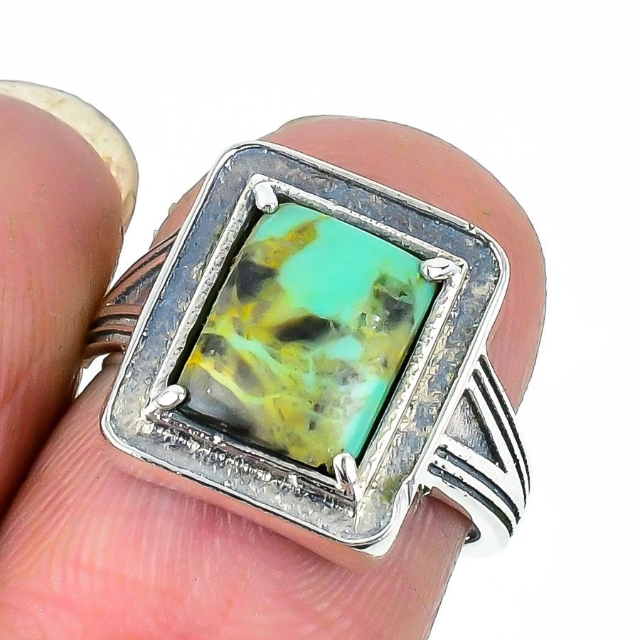 Black Jack Turquoise Gemstone 925 Silver Ethnic Artisan Statement Ring US 6.5