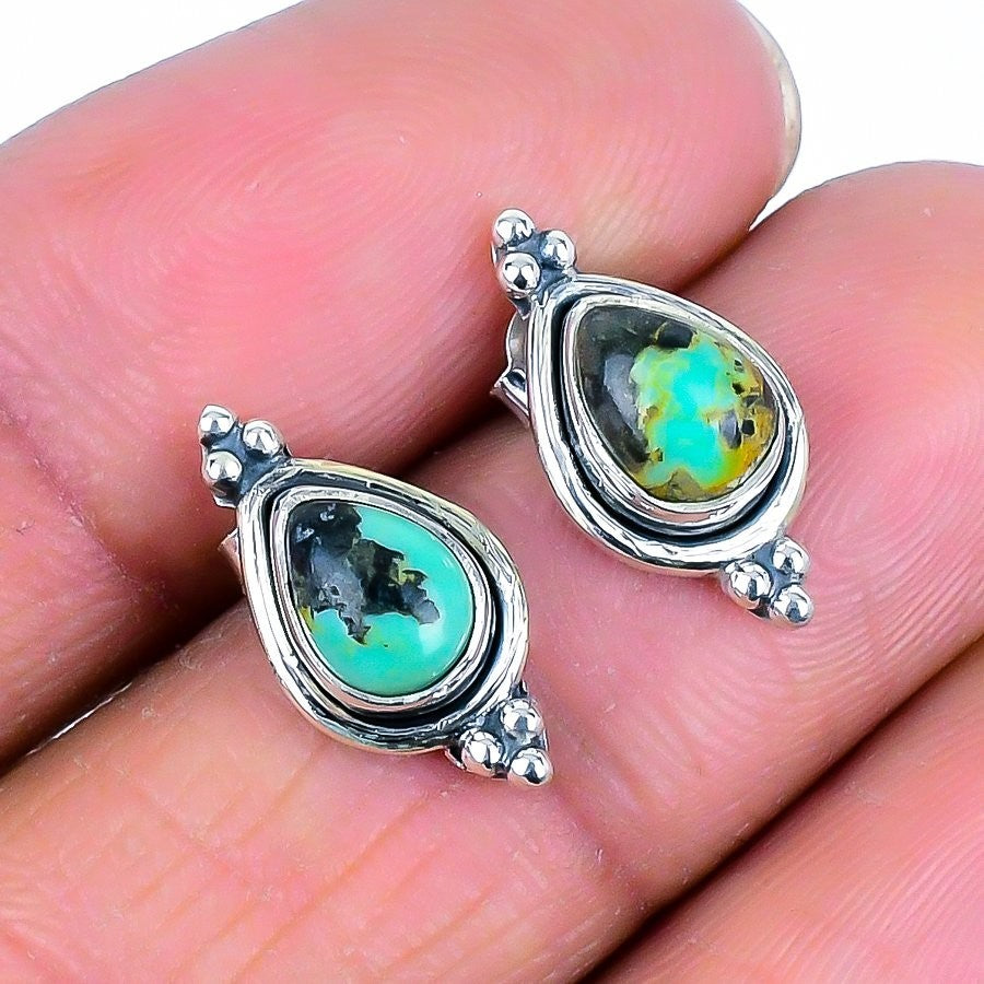 Black Jack turquoise Gemstone Stud Anniversary Wedding Earrings 925 Solid Silver