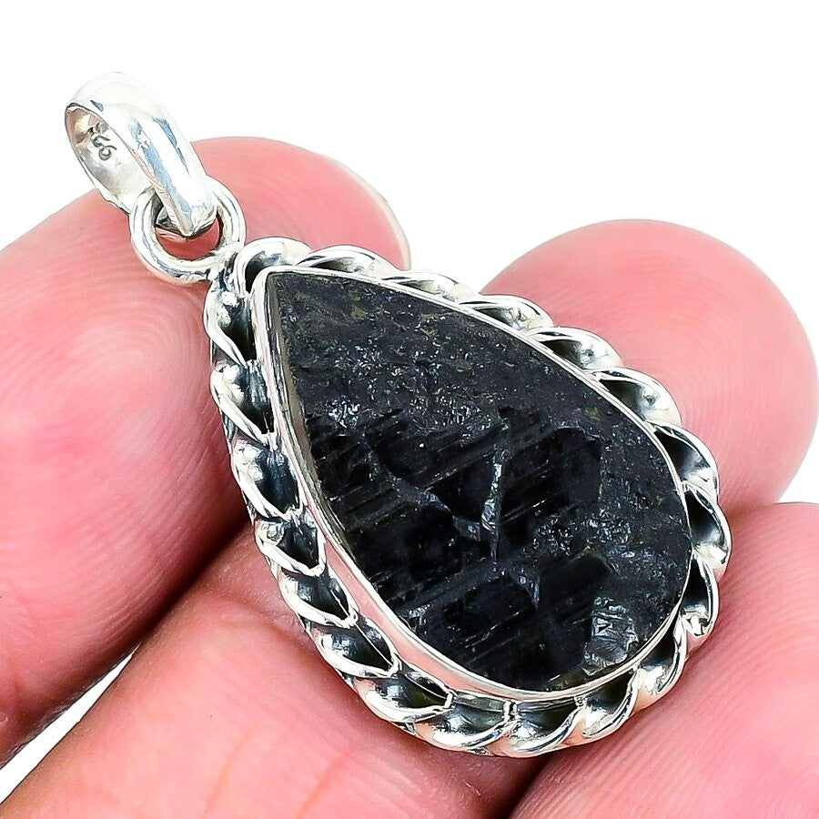 Black Kyanite Gemstone Anniversary Wedding Throat Chakra Pendant Sterling Silver