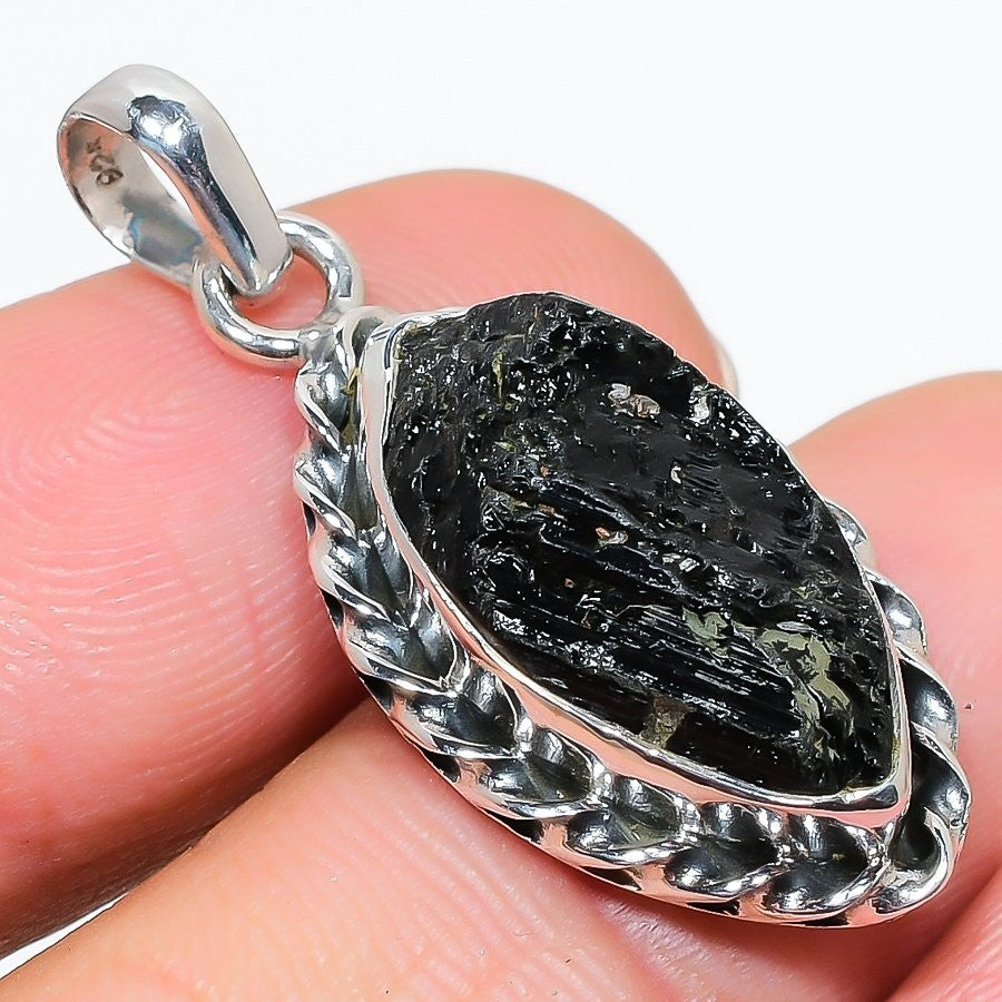 Black Kyanite Gemstone Sisters Gift Wife Pendant Jewelry Solid Sterling Silver