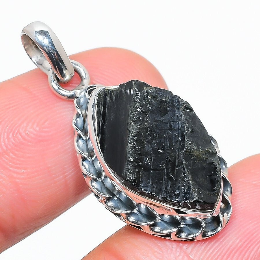 Black Kyanite Stone Solid Silver Throat Chakra Sister Birthday Pendant Jewelry
