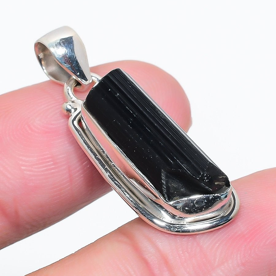 Black Kyanite Stone Solid Sterling Silver Art Deco Handcrafted Pendant Jewelry