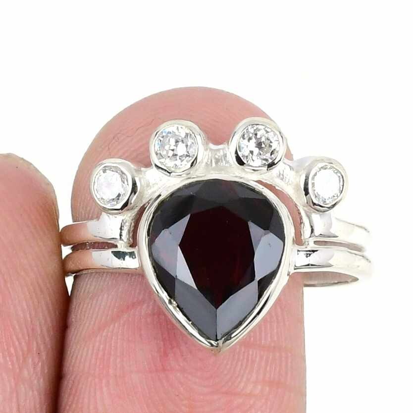 Black Onyx & garnet Gemstone 925 Solid Silver Cluster Wife Ring Jewelry Size 10