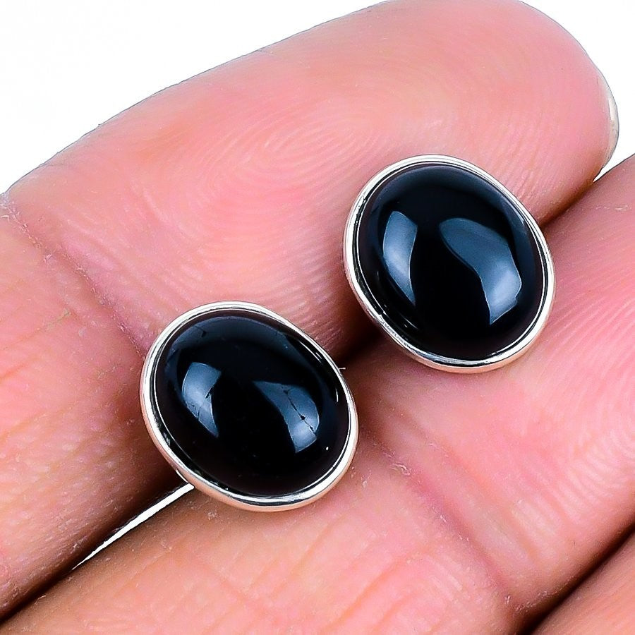 Elegant Black Onyx Gemstone 925 Solid Silver Stud in 925 Ste