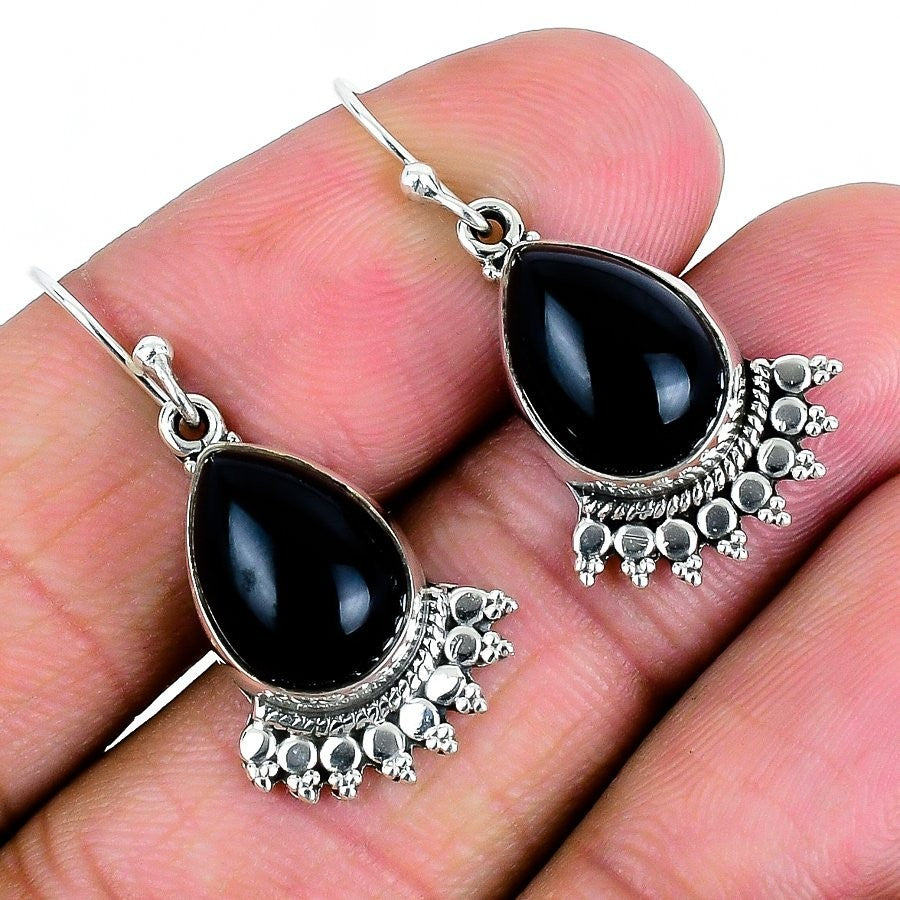 Black Onyx Gemstone Solid Sterling Silver Hook Dangle Drop Wife Earrings Jewelry