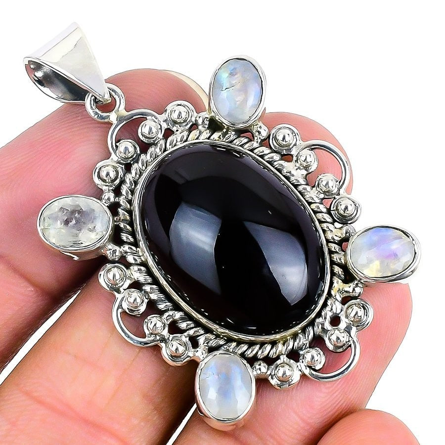 Black Onyx Gemstone Solid Sterling Silver Mother Anniversary New Pendant Jewelry