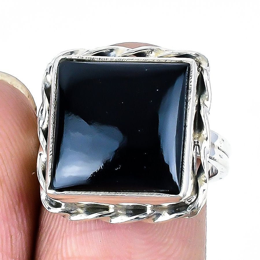 Black Onyx Gemstone Sterling Silver Boho Statement Daughter Trendy Ring Size 7.5