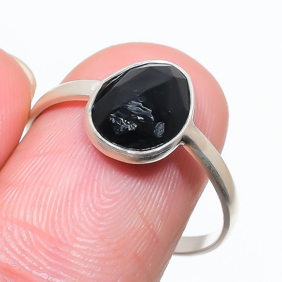 Black Onyx Gemstone Sterling Silver Engagement Cluster Handcrafted Ring Size 10